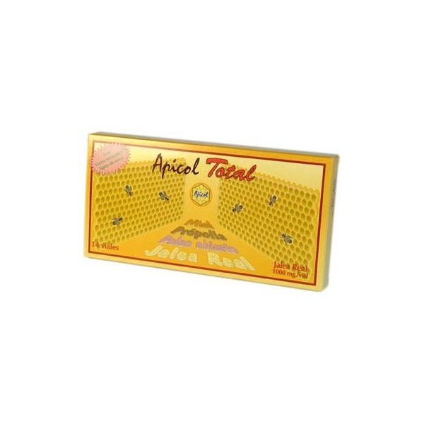Insgesamt Biene. In der "Beehive" Gelee Royale, Propolis, Pollen und Honig, damit die Wabe Aufrechterhaltung gesund, aktiv und geschützt werden, die auch Vorteile für den Menschen. Zutaten: Gelee Royale, Propolis und Pollen von Fehlern öffnet sich in einem Basis von Erdbeer-Saft, Grenadine und Honig. Präsentation: Box mit 14 Fläschchen mit 6 ml.