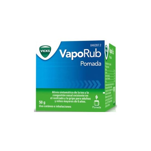 Vicks VapoRub is a drug indicated for the relief of cough and nasal congestion existing in the common cold and flu. See all the features of this medicine in its prospectus