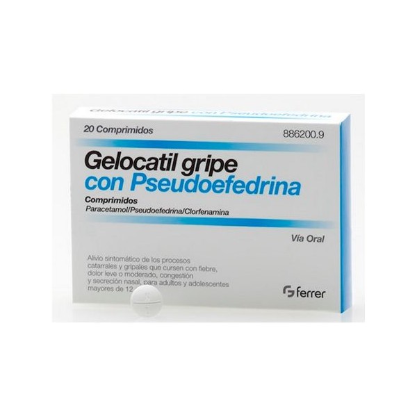 Gelocatil Flu with pseudoephedrine tablets is an over-the-counter medication indicated for the relief of symptoms of colds and flu that occur with fever, mild or moderate pain, congestion and runny nose, for adults and adolescents 12 and over. Ask your health care provider any questions you may have about how to use this medicine.