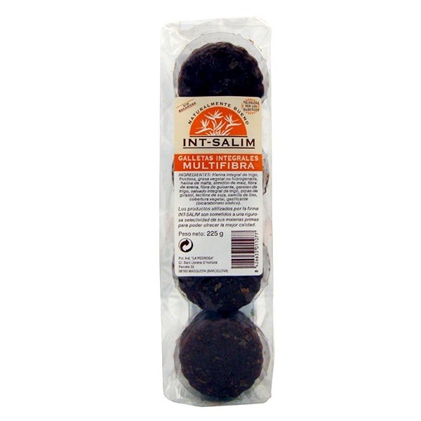 Salim Int Multi-Fibre Biscuits 225gr ingredients whole wheat flour, vegetable fat, fructose, sugar, sunflower pipes, semidesgrasado cocoa, corn starch, wheat bran, wheat germ, soy flour, flax seed, malt flour, leavening, soy lecithin, flavors. Power: 485 gr kcal/100g Protein: 7 g Carbohydrates: 57 grams Fat: 25.5 g