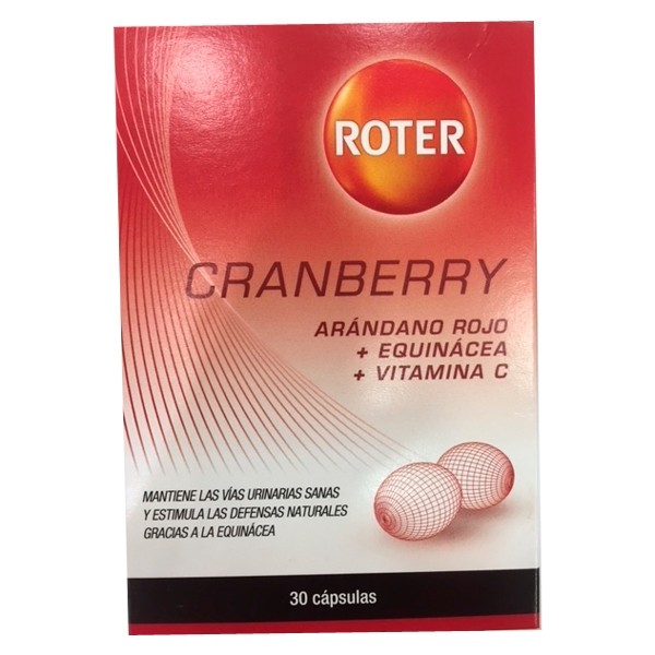 Roter Cranberry 30 cápsulas Para la cistitis. Tratamiento y prevención. Roter es un producto sanitario indicado en el tratamiento y prevención de la cistitis e infecciones del tracto urinario. El envase contiene 30 cápsulas con...