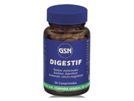 GSN Digestif 50 comprimidos. Este producto combina dos especies vegetales y dos enzimas digestivas para aportar los siguientes principios activos: Los capítulos florales de la manzanilla son ricos en camazuleno y bisabolol, así como flavonoides y cumarinas. Las hojas de la hierba luisa contienen numerosos principios activos como el citral, el limoneno y alcoholes terpénicos. La actividad de las enzimas digestivas se mide en U.D.E. y F.I.P., que son unidades de digestión enzimática. Composición por toma (2 comprimidos): Manzanilla, capítulos florales (Matricaria chamomilla L.) Potencia equivalente a: 400 mg Hierba Luisa, hojas (Lippia triphilla L.) Potencia equivalente a: 240 mg Enzimas digestivas: Papaína (24 F.I.P.*) 100 mg Complejo multi-enzimático 40 mg Amilasas 960 UDE*) Proteasas 240 UDE*) Lactasas 160 UDE*) Lipasas 40 UDE*) Celulasas 10 UDE*) Carbonato cálcico-magnésico 400 mg (*) F.I.P. y U.D.E.: unidades de digestión enzimática.