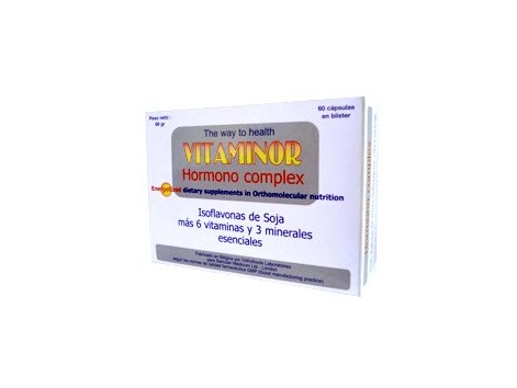 El germen de Soja utilizado en este complejo contiene una proporción alta de isoflavonas, que junto a las vitaminas y oligoelementos, aportan confort en determinados problemas hormonales. Vit. C 100% natural -Extracto seco estandarizado de Acerola- (Malpighia Glabra)Vit. C 100% natural -Extracto seco estandarizado de Acerola- (Malpighia Glabra) Útil como suplemento alimenticio en los casos de afección estacional viral, alcoholismo, alergia, anemia, artrosis, bacteriosis, cáncer (prevención y enfermedad), quimioterapia, estreñimiento, coriza, lesión de los dientes y encías (hemorragia de las encías), depresión nerviosa, dificultades de concentración, distintos dolores, gota y hiperuricemia, gripe, hemorragias, hemorroides, hepatitis, herpes, HTA, inmunodeficiencia, infección bacteriana, intervención quirúrgica (cicatrización), piernas pesadas, litiasis biliar, falta de atención, mononucleosis infecciosa, micosis, osteoporosis, parasitosis, contaminación, psicosis maniaco depresivo, radioterapia, esquizofrenia, tensión, tabaquismo, exceso de colesterol, exceso de triglicéridos, desordenes del sueño, úlcera varicosa, varices. La vitamina C tiene un papel mayor en la defensa general del organismo. Es importante para la formación del colágeno, necesario para el crecimiento y la reparación de los tejidos, como son las encías, los vasos sanguíneos, los huesos y los dientes. La vitamina C interviene en más de 300 funciones metabólicas del organismo, como en el metabolismo de ciertos aminoácidos, una ayuda para la cicatrización de las heridas y a la absorción del Fe y el Ca, puede reducir el riesgo de cataratas, combate ciertas formas de esterilidad masculina, y posee una acción de prevención del cáncer (premio Nóbel otorgado a Linus Pauling). Por su acción antioxidante, está aconsejada, junto con otros antioxidantes, en la lucha y prevención del envejecimiento. Su presencia es necesaria para una mejor absorción del cromo. 120 mg Germen de Soja (Gycine Max) -Daidzéina, Gliciteína, Genisteína-Germen de Soja (Gycine Max) -Daidzéina, Gliciteína, Genisteína- Útil como suplemento alimenticio para moderar los sofocos. La Soja o Glycine max una papilionácea originaria de China. Actualmente cultivada en las regiones templadas. Es la leguminosa más cultivada del planeta. Es una planta anual que se asemeja a la judía vulgar. Las semillas o habas son las que se utilizan por su valor alimenticio. Contiene aminoácidos esenciales (es un alimento vegetal comparable a la carne), ácidos grasos esenciales (un 30% de oleico, un 50% de linoleico, 2 al 4% de linolenico), fosfolípidos (lecitinas), esteroles (el insaponificable) utilizados contra la piorrea alveolar, pigmentos amarillos ricos en carotenoides y en isoflavonas o fitoestrogenos (genisteina, metil genisteina y daidcenina), vitaminas del grupo B, tocoferoles, carotenos y trazas de vit.D y enzimas, en particular de la ureasa. Una vez ingeridas las isoflavonas se comportan como hormonas naturales pero con una potencia de acción 1000 veces menor, si el organismo produce demasiados estrógenos los fitoestrogenos bloquean parcialmente sus efectos negativos y si hay una deficiencia los fitoestrogenos compensan una parte de las necesidades. Los fitoestrogenos actúan como verdaderos reguladores del equilibrio hormonal. Las isoflavonas de soja ofrecen una alternativa interesante en el periodo de la menopausia y aporta una respuesta satisfactoria en los problemas climatéricos y la sequedad vaginal así como una disminución sensible de los sofocos. Las proteínas, de lecitina e isoflavonas de soja tienen una acción hipocolesteromiante. Las isoflavonas de soja mejoran el perfil de las grasas sanguíneas antes que los niveles del colesterol, lo cual indica que su acción no solo beneficia a las personas que tienen niveles altos de colesterol. Investigaciones sobre nutrición y cáncer indican que el consumo de soja reduce hasta un 70% el riesgo de cáncer de próstata. En laboratorio las isoflavonas inhiben la génesis de tumores y la multiplicación de células tumorales de la próstata de ratón. Se han obtenido resultados similares en los tumores mamarios de rata. Tomando simultáneamente con hormonas tiroideas, la soja reduce su absorción. 150 mg. Magnesio quelado AA: Útil como suplemento alimenticio por su efecto neuroregulador de la conducción nerviosa. Absolutamente esencial para la vida, el magnesio interviene en el metabolismo de la glucosa, en la producción de la energía celular, y participa en las funciones nerviosas y musculares. Actúa en relación con el calcio y previene los riesgos de cálculos renales o biliares, así como el depósito de calcio en los vasos sanguíneos y el corazón. El magnesio previene también la formación de coágulos sanguíneos. Participe en la lucha contra la depresión y el stress, protege el sistema cardiovascular y ayuda al tratamiento de la hipertensión arterial. Ayuda a mantener el equilibrio ácido-básico. Útil en caso de nerviosismo, taquicardias, insomnio y temblores musculares. 30 mg. Zinc quelado AA: Útil para la suplementación alimenticia por su intervención en múltiples reacciones en el seno del organismo. Cofactor enzimático en los procesos anti-radicales, implicado en el metabolismo de los ácidos grasos poli-insaturados y la biosíntesis de las prostaglandinas antiagregantes y vasoconstrictoras. Consecuentemente, juega un papel mayor en la regulación de los fenómenos inflamatorios y alérgicos. El zinc interviene en la actividad de más de 200 enzimas, y en particular en todas las etapas de síntesis proteica (queratina y colágeno). Acelera la cicatrización, activa la timulina (funciones inmunitarias), Participa en el normal funcionamiento de la próstata, contribuye a dar agudeza en el olfato y el gusto, y es un factor para la lectura del genoma. Activa la superóxido dismutasa de cobre y zinc (CuZnSOD, enzima antiradical mitocondrial), la