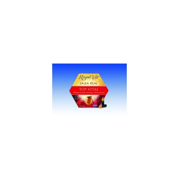 Dietisa Geleia Real Top Vital 20 frascos. CARACTERÍSTICAS: Preparado para fornecer energia e nutrição para uma acção estimulante. INGREDIENTES: Frutose, água, geléia real, ginseng, tempero de laranja, Eleutherococcus, ácido cítrico e sorbato de potássio. MODO EMPLEOSe recomenda tomar 1 frasco de jejum diariamente, de preferência diluído com água, leite ou suco de fruta. Reforçador: Geléia Real. Tônico vitalizante-propriedades: Pó de raiz de Ginseng. Facilita o esforço físico e de recuperação Estimulante Imunológico: Eleutherococcus Pó de raiz, Vitalizante.