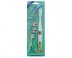Escova iônica eletrônica anti-placa macia. Graças a uma bateria de lítio localizada no cabo da escova, quando a cabeça entra em contato com os dentes, é acionado um circuito eletrônico que inverte a polaridade dos dentes de (-) para (+), fazendo com que eles repelam a placa bacteriana. em direção à cabeça da escova, que mantém a polaridade negativa (-).